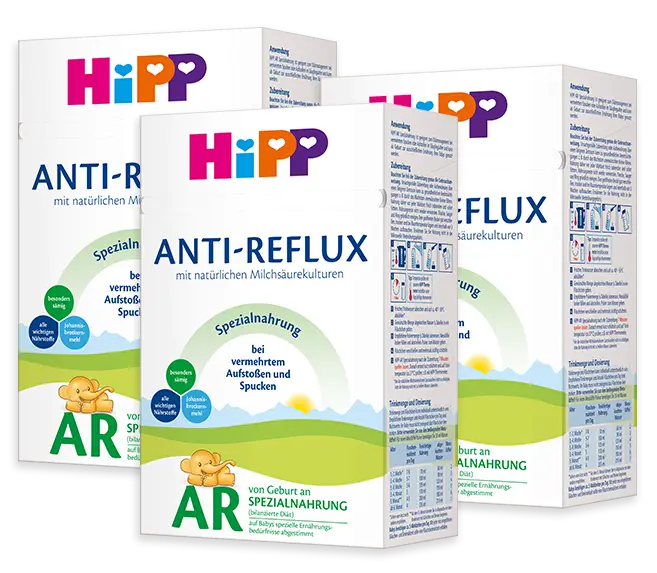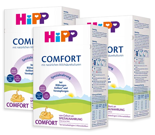 We offer two specialty formulas: HiPP Comfort and HiPP Anti-Reflux. HiPP Comfort formula is for babies with digestive troubles, unregular bowel movements, gas, constipation, and colic issues. HiPP Anti-Reflux formula is for babies with regurgitation issues and spit-up.